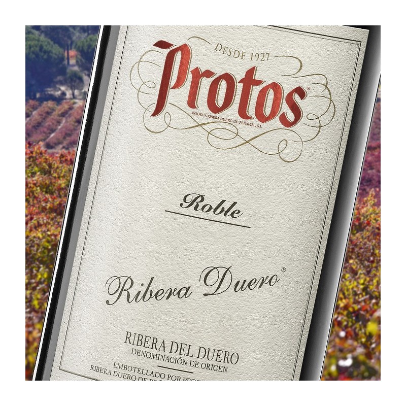 Charakterystyka: Protos Roble czerwony, który oddaje cały charakter tempranillo. Winogrona zbierane ręcznie. Piętnastodniowa fermentacja w temperaturze 24 stopni Celsjusza. Wino dojrzewa 6 miesięcy w beczkach francuskich i amerykańskich i 6 miesięcy w butelce. Kolor lekko wiśnowy z purpurowymi krawędziami. Nos i usta intensywne, wyraziste z dużą dawką świeżych ciemnych owoców. W głębi odrobina słodkich przypraw. Finisz długi i przyjemny z krągłymi, ale aksamitnymi taninami.